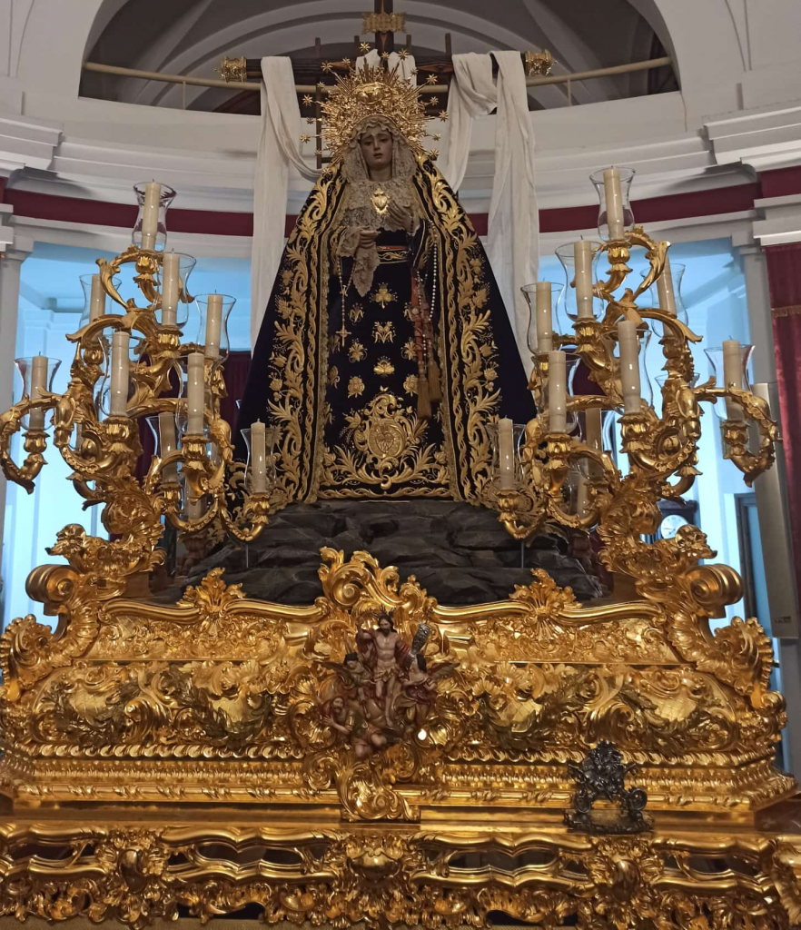 Disfrutamos del maravillosoAltar de Culto montado por elequipo de mayordomía de nuestra Hermandad y el privilegio de tener a Nuestra Madre de Loreto, como siempre vestida para la ocasión por nuestro vestidor, Jesús Tamayo.