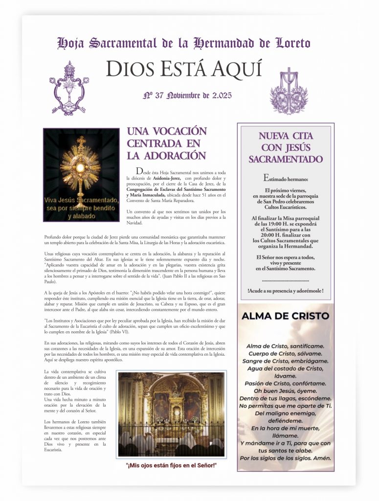 Este viernes día 7 de Noviembre celebramos los Cultos Eucarísticos de cada primer viernes de mes.