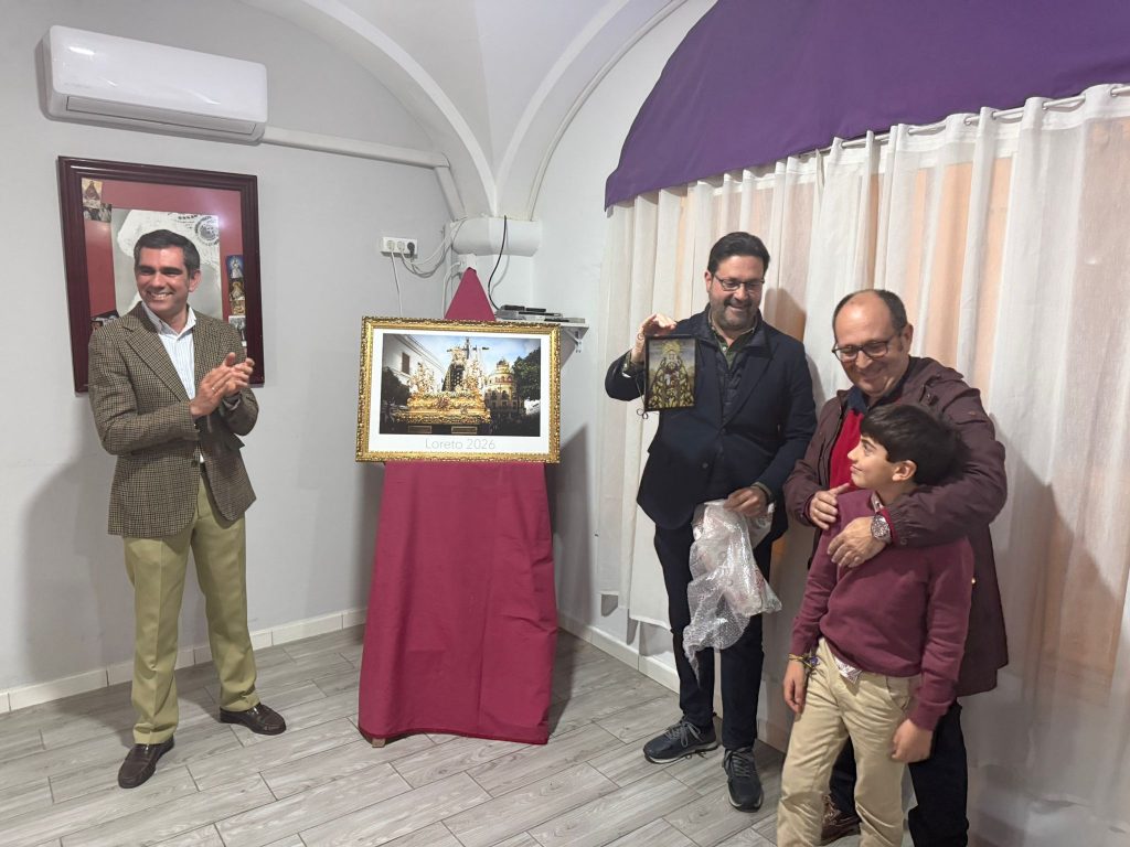 la hermandad le entregó un pequeño detalle de agradecimiento de manos de Jorge, hijo de nuestros hermanos Luis Bulpe y Bea Mendoza.